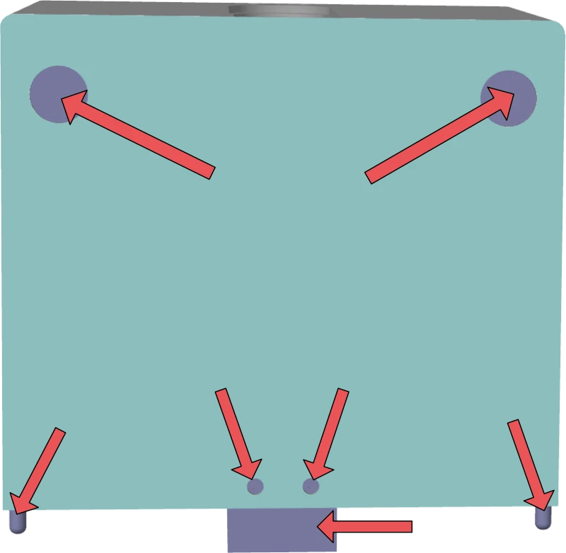 Beim technical compartment werden 2 Stützen benötigt und ihr könnt mit dem Ausfüllwerkzeug diese Bereiche markieren.
