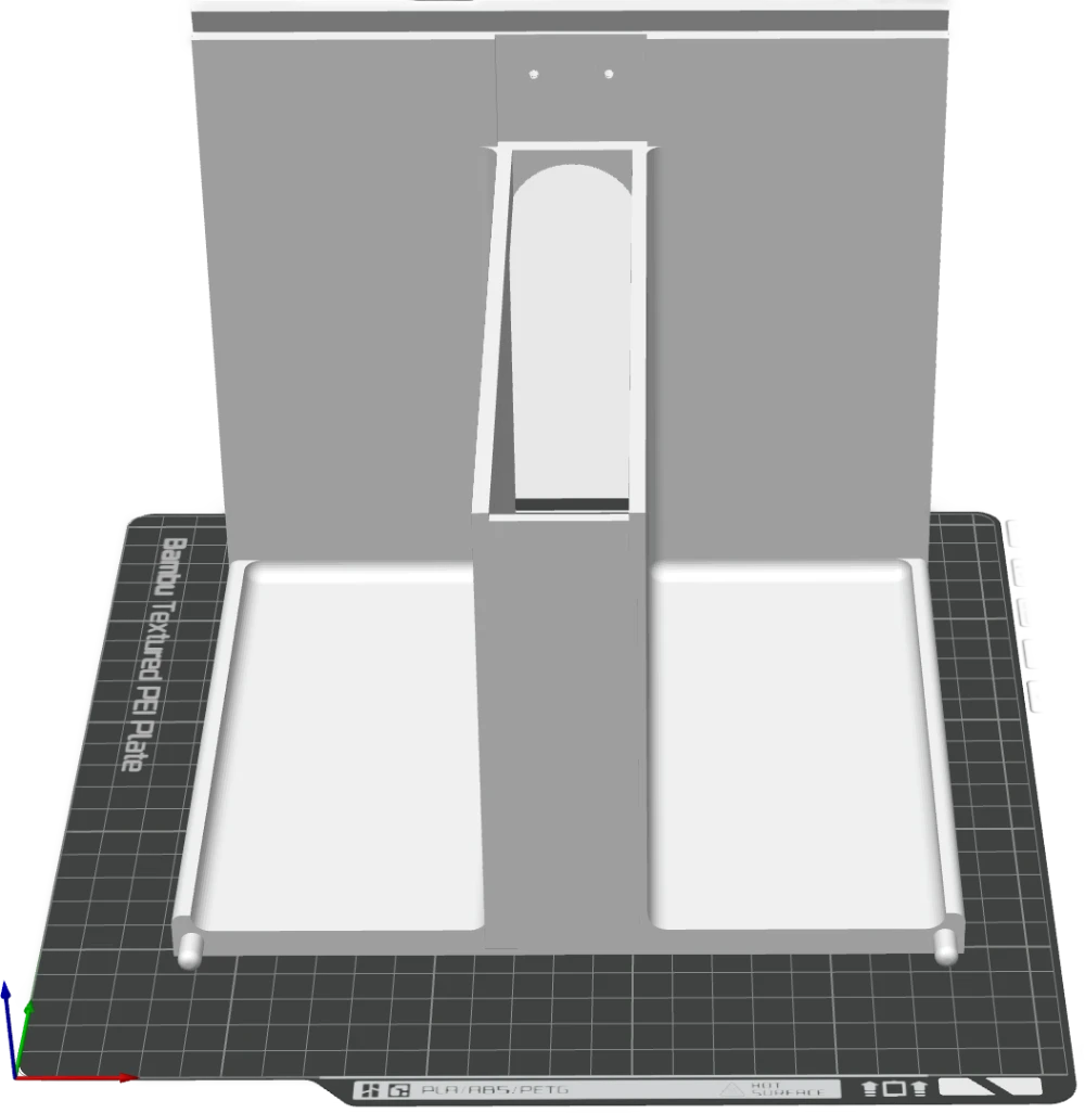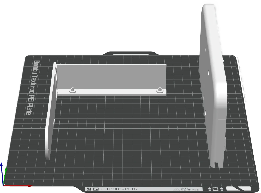 Sobald ihr die Stützen markiert habt, platziert ihr die beiden Bauteile auf dem Druckbett, wie auf dem Foto zu sehen ist.